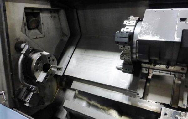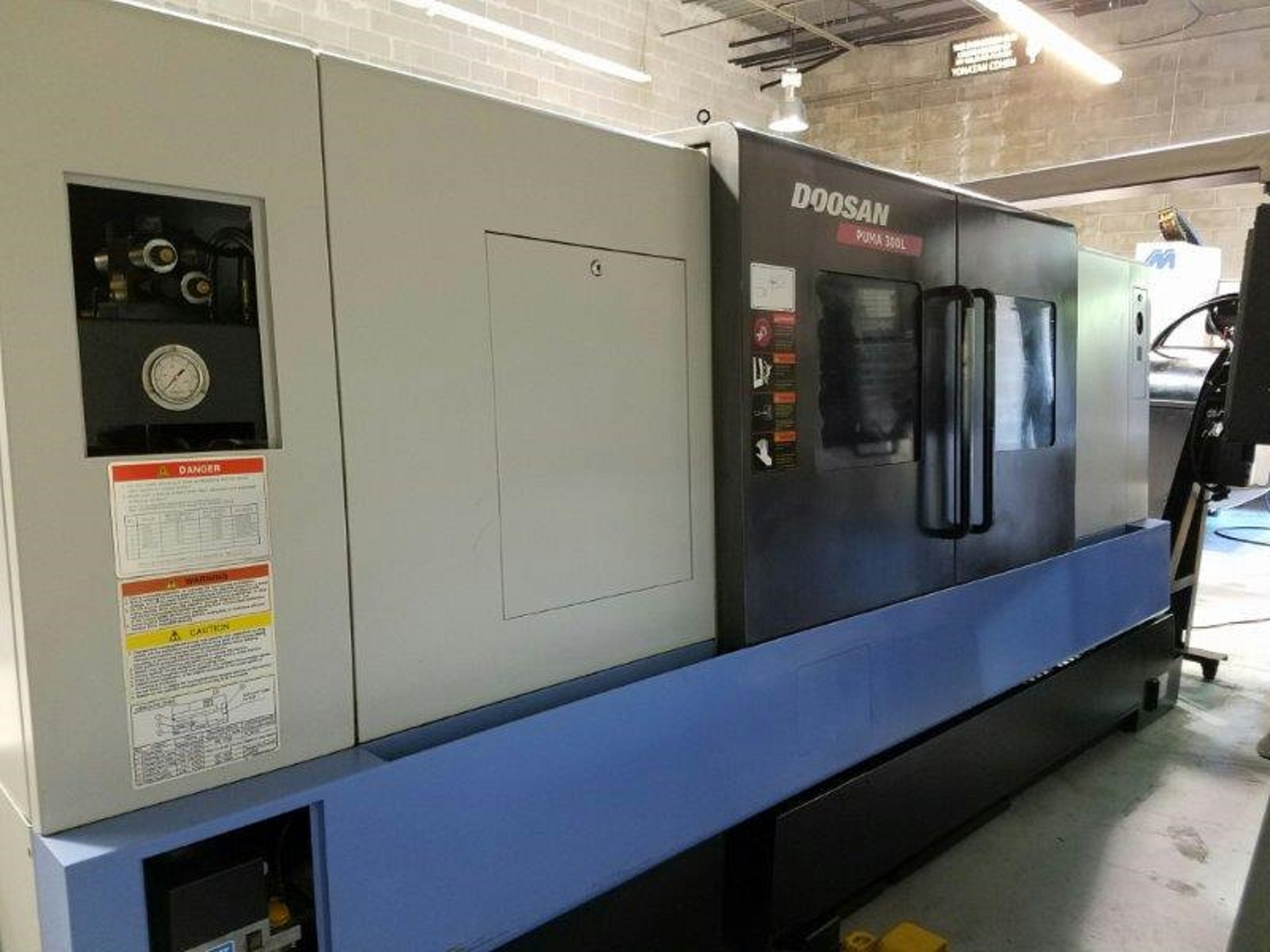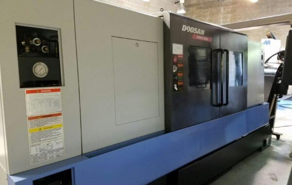 Less than 300 hours, It is equipped with 12″ Chuck, Tool Presetter, Tailstock ,Chip Conveyor. On Our Floor fully powered / tested & is in Great working condition.” Doosan Puma 300LC Equipped With: Fanuc i series CNC Control Box way construction Rigid Tapping 12″ 3 Jaw Hydraulic Chuck A2-11 Spindle Auto Tool Presetter Hydraulic Programmable Tailstock and Quill PCMCIA Card Slot Coolant System Barfeed Interface 12 Station Automatic Turret Foot Switch Turbo Chip Conveyor General: Power: 45 kva, 220v / 3-Phase Overall Dimensions: 150″ x 77″ x 80″ High Overall Dimensions: 168″ x 77″ x 80″ High with Chip Conveyor Weight: 15000 lbs Doosan Puma 300LC Specifications: Capacity: Max Turning Diameter: 15.7″ Max Turning Length: 50.4″ Max Bar Capacity: 4.05″ Swing Over Bed: 22.4″ Distance Between Centers: 52.8″ X Axis Travel: 11.1″ Z Axis Travel: 52.4″ Rapid Traverse X Axis: 787 IPM Rapid Traverse Z Axis: 945 IPM Spindle Nose: A2-11 Spindle Bore: 4.5″ Spindle Speed: 0 – 2800 RPM Spindle Motor: 35 HP Turret Capacity: 12 Stations Turret Index Time: 0.15 Second Tailstock Taper: MT-4 Tailstock Quill Dia.: 3.97″ Tailstock Quill Travel: 4.7″